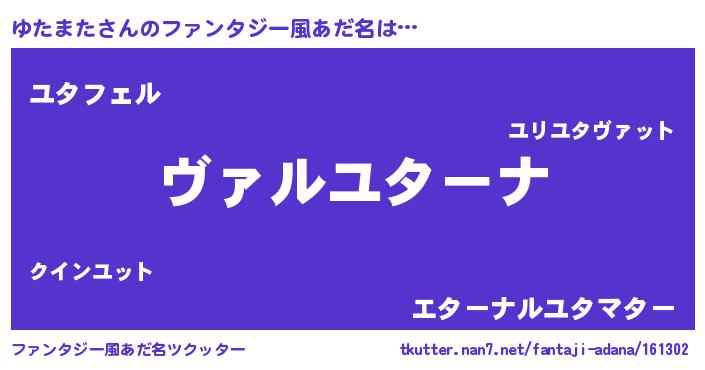 | 男性向けラノベタイトル風あだ名 | 『魔弾の王とゆたまた』 |