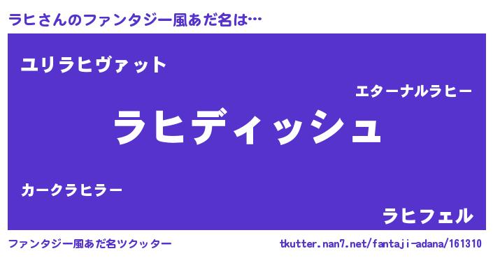 | 男性向けラノベタイトル風あだ名 | 『ラヒという概念が存在しない退屈な世界 』 |