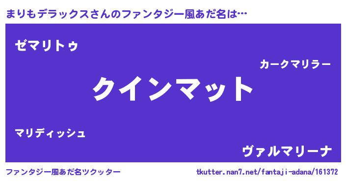 | ヒーロー風カッコイイあだ名 | 『天空の使者まりもデラックス』 |