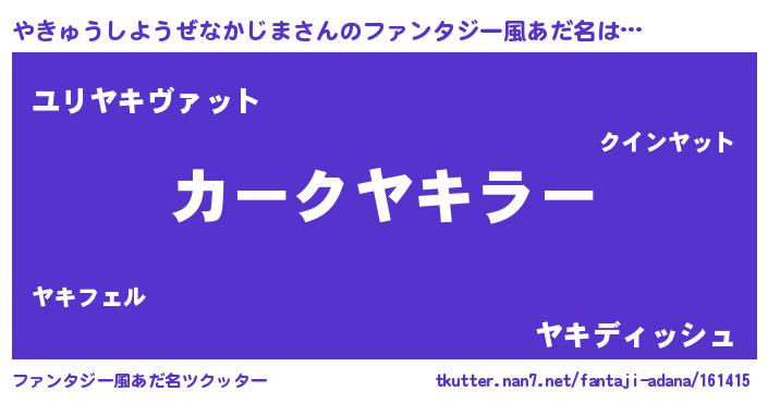 | ヒーロー風カッコイイあだ名 | 『ネオヤキュウシヨウゼナカジマ』 |