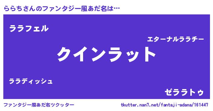| 欧米人風あだ名 | 『アンジェラ・ららち』『ダニエルららち』 |