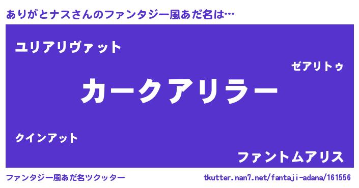 | ヒーロー風カッコイイあだ名 | 『魔戒騎士アリ』『愛の使者ありがとナス』 |