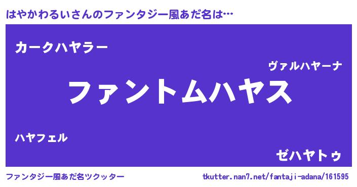 | 女子向けラノベタイトル風あだ名 | 『はやかわるい様がみてる』 |