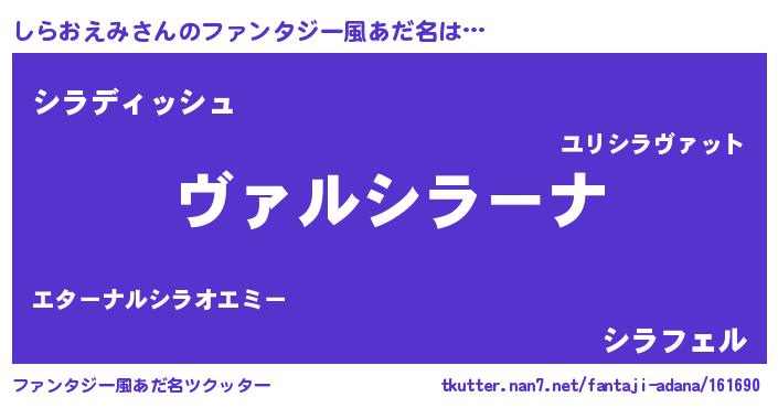 | 男性向けラノベタイトル風あだ名 | 『この素晴らしい世界にしらおえみを!』 |