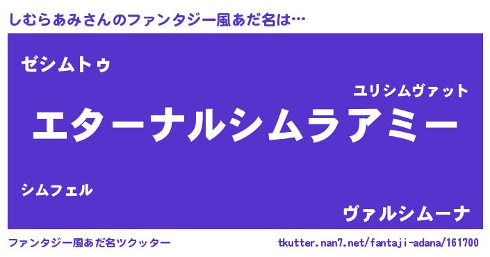 | 欧米人風あだ名 | 『しむらあみクリステル』 |