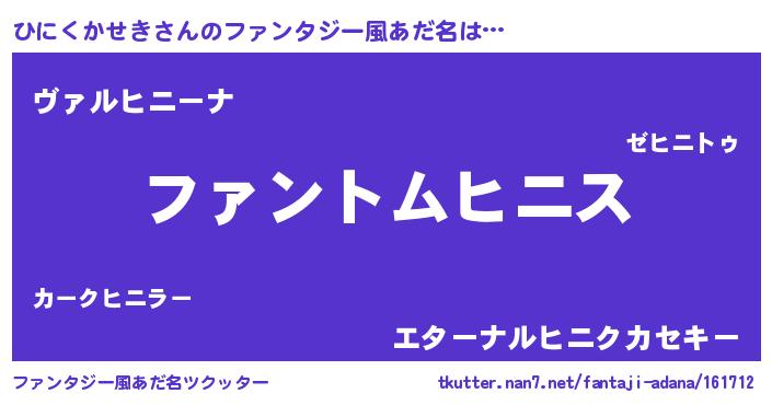 | ヒーロー風カッコイイあだ名 | 『暗黒騎士ヒニ』『仮面ヒニダー』 |