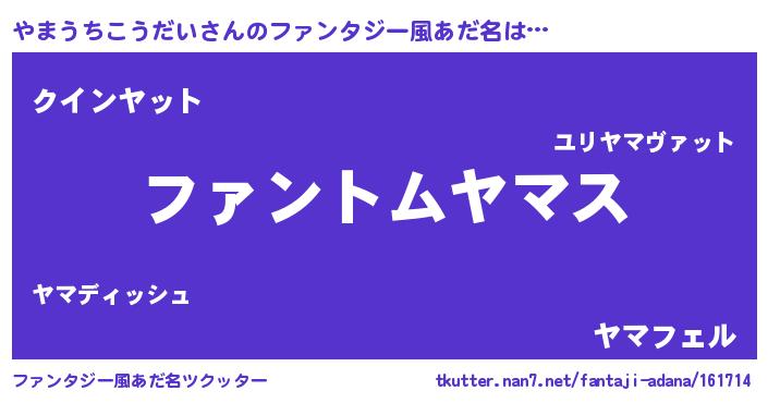 | 男性向けラノベタイトル風あだ名 | 『やまうちこうだいの嫁は女の子じゃないと思った?』 |