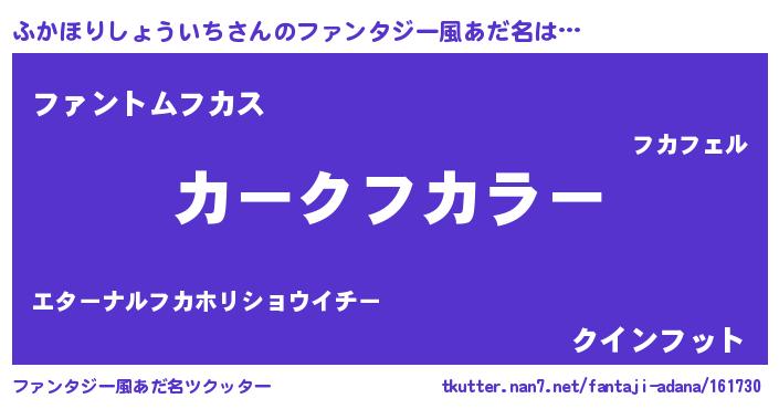 | 男性向けラノベタイトル風あだ名 | 『緋弾のフカホリショウイチ』 |