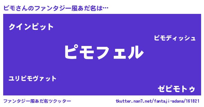 | 自動車の名前っぽいあだ名 | 『ピモティマ』『ピンR』『デミピ』 |