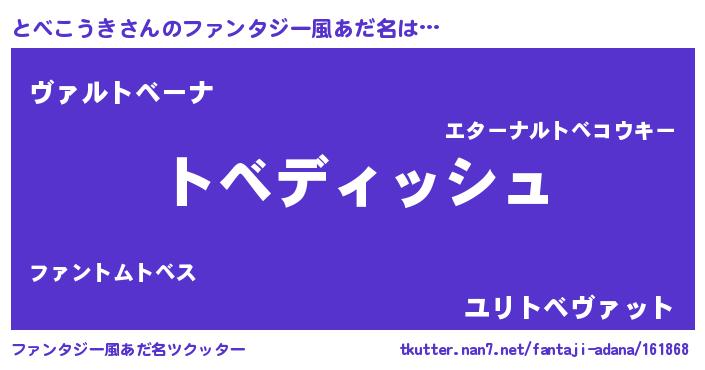 | ヒーロー風カッコイイあだ名 | 『ネオトベコウキ』『仮面トベダー』 |