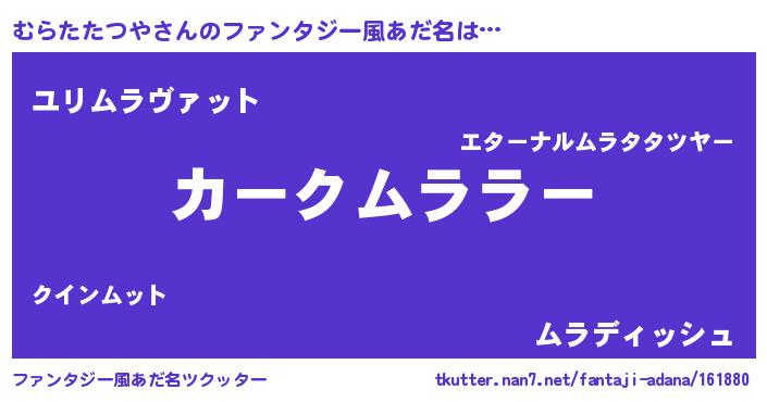 | 男性向けラノベタイトル風あだ名 | 『うちのむらたたつやが世界を掌握している!』 |