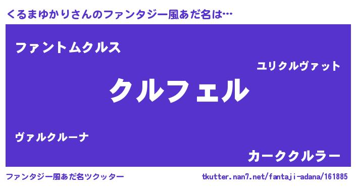 | ポケモン風あだ名 | 『クルチュウ』『ヒクルマユカリ』 |
