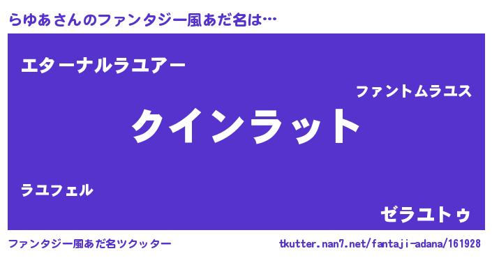 | ヒーロー風カッコイイあだ名 | 『正義の使者らゆあ』『究極戦士ラユア』 |