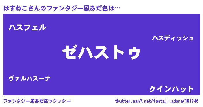| 男性向けラノベタイトル風あだ名 | 『Re:はすねこから始める異世界生活』 |