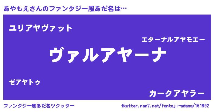 | ヒーロー風カッコイイあだ名 | 『仮面アヤダー』『ウルトラあやもえマン』 |