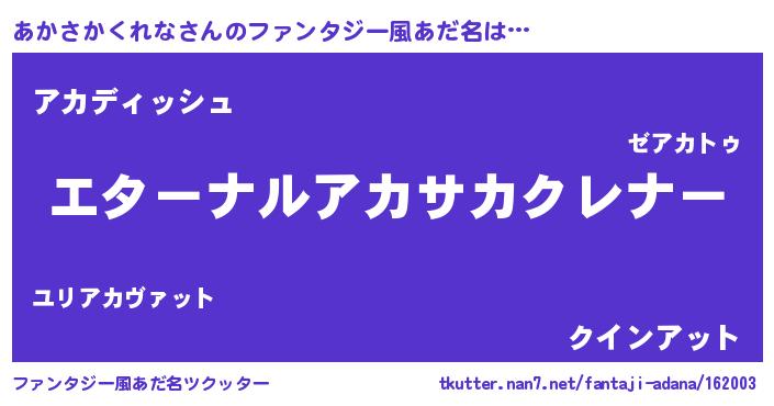 | 女子向けラノベタイトル風あだ名 | 『あかさかくれなの雑貨屋さん』 |