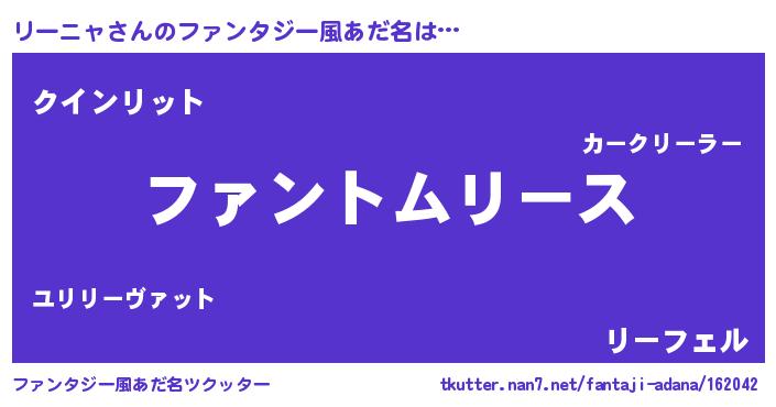 | 男性向けラノベタイトル風あだ名 | 『リーニャの嫁は女の子じゃないと思った?』 |