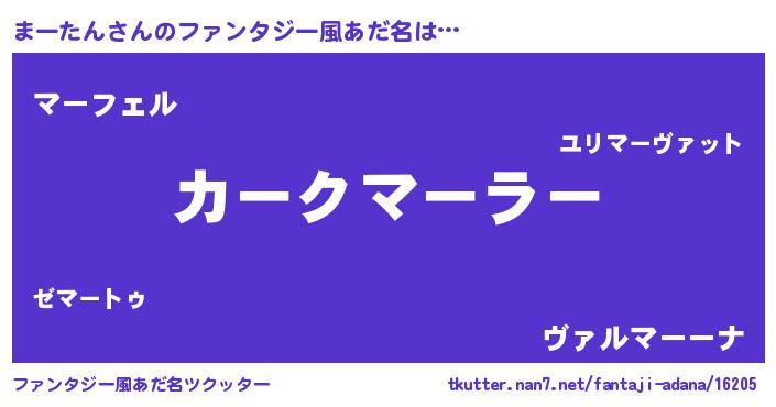 | 意味不明あだ名 | 『ペロリンまーたん』『自称まーたん』 |