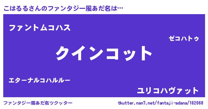 | 男性向けラノベタイトル風あだ名 | 『おまえをオタクにしてやるから、俺をこはるるにしてくれ! 』 |