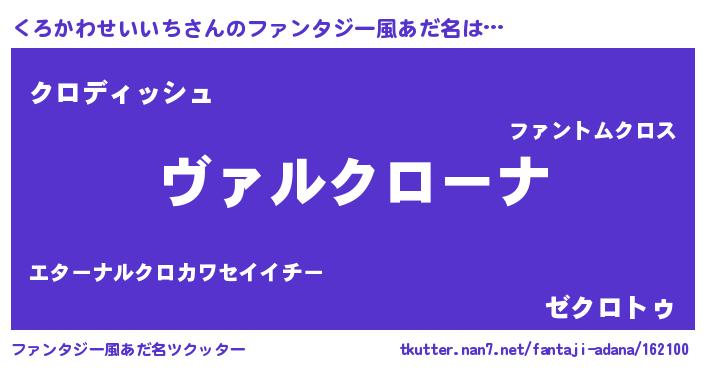 | 男性向けラノベタイトル風あだ名 | 『この素晴らしい世界にくろかわせいいちを!』 |