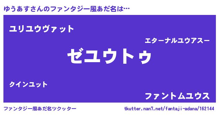 | ヒーロー風カッコイイあだ名 | 『最強戦士ユウアス』『魔戒騎士ユウ』 |