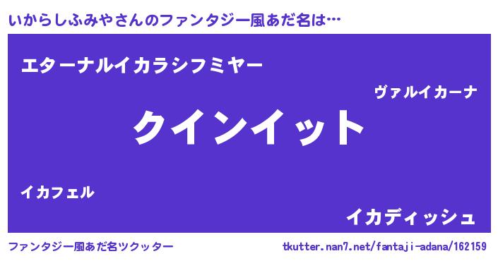| 男性向けラノベタイトル風あだ名 | 『ノーゲーム・ノーイカラシフミヤ』 |