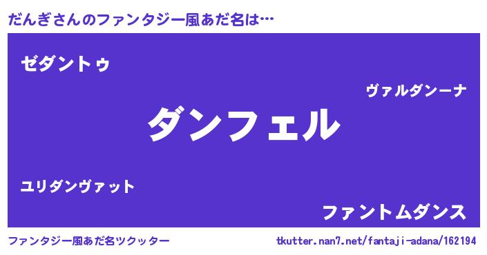 | 男性向けラノベタイトル風あだ名 | 『だんぎに滅ぼされるだけの簡単なお仕事です』 |