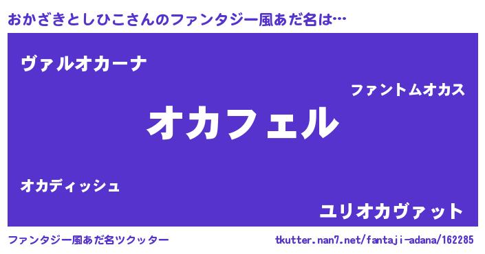 | 女子向けラノベタイトル風あだ名 | 『(仮)おかざきとしひこのやんごとなき事情』 |