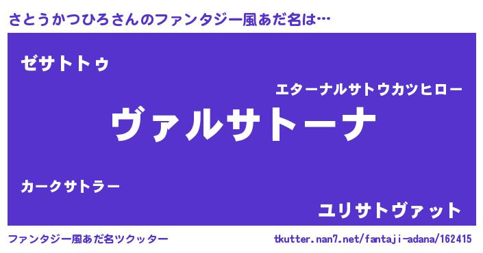| 男性向けラノベタイトル風あだ名 | 『この素晴らしい世界にさとうかつひろを!』 |