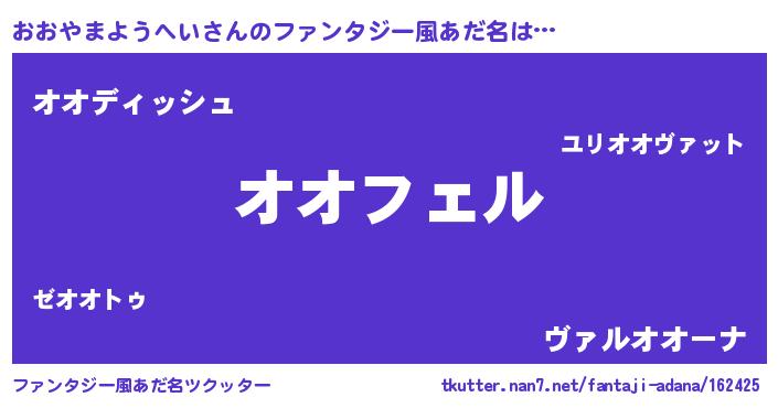 | 男性向けラノベタイトル風あだ名 | 『オオヤマヨウヘイアートオンライン』 |