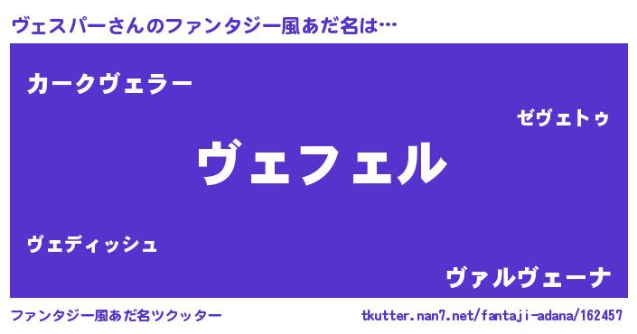 | 意味不明あだ名 | 『ペロリンヴェスパー』『自称ヴェスパー』 |