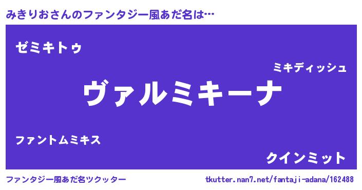 | 意味不明あだ名 | 『住所不定無職みきりお(13歳)』 |