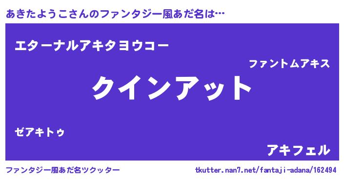 | 男性向けラノベタイトル風あだ名 | 『ノーゲーム・ノーアキタヨウコ』 |