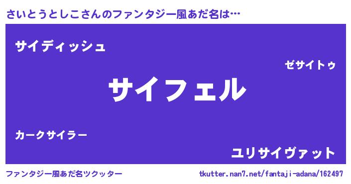 | ヒーロー風カッコイイあだ名 | 『スーパーサイトウトシコ』 |