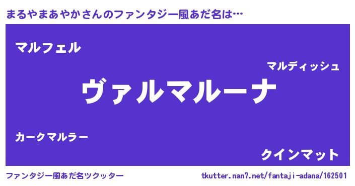| 女子向けラノベタイトル風あだ名 | 『乙女ゲームの破滅フラグしかない悪役まるやまあやかに転生してしまった…』 |