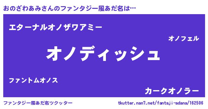 | 欧米人風あだ名 | 『ダルビッシュおのざわあみ』 |