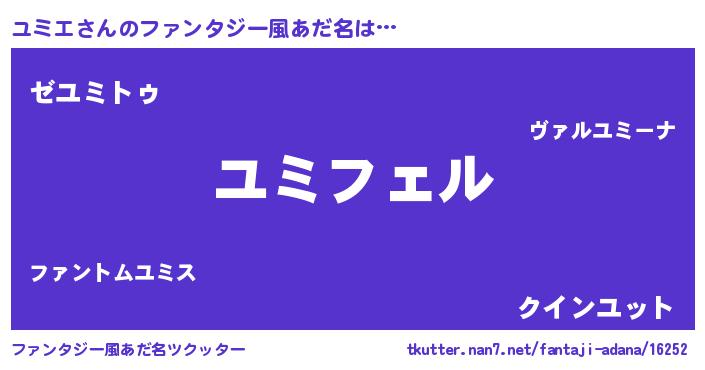 | 男性向けラノベタイトル風あだ名 | 『ユミエの憂鬱』『魔法科高校のユミエ』 |