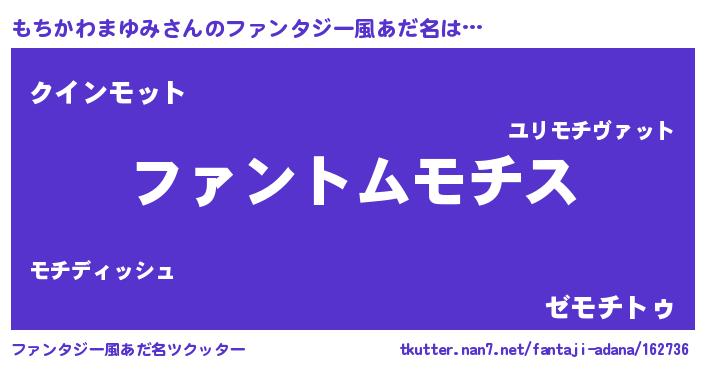 | 意味不明あだ名 | 『とにかく怪しいもちかわまゆみ』 |