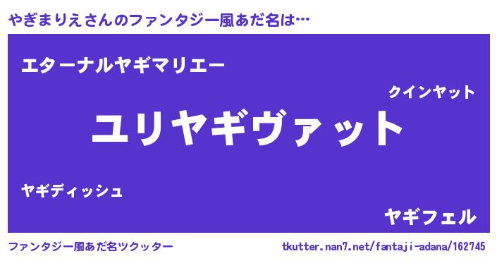 | 男性向けラノベタイトル風あだ名 | 『やぎまりえ~年齢イコール彼女いない歴の魔法使い~』 |
