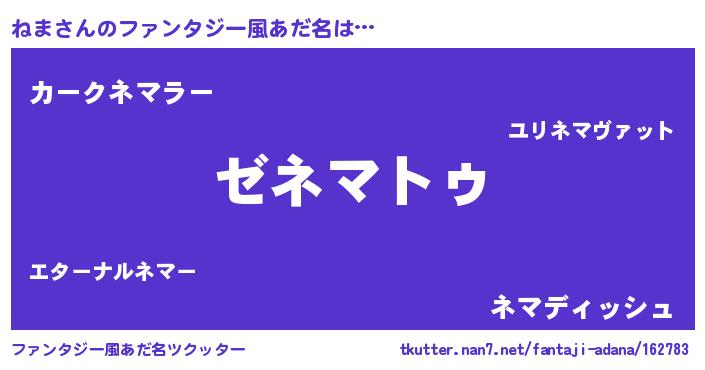 | 意味不明あだ名 | 『自称ねま』『永久保存ねま』 |