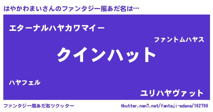 | ポケモン風あだ名 | 『ハックウザ』『ハヤカダネ』 |