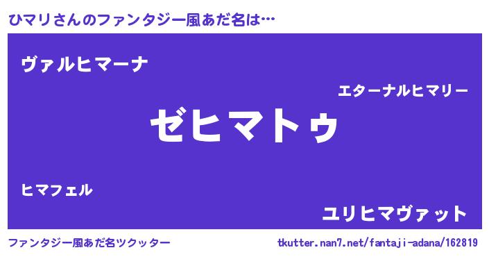 | ポケモン風あだ名 | 『ヒマセウス』『ヒマゴンZ』 |