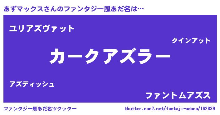 | 欧米人風あだ名 | 『あずマックス・ステッグマイヤー』 |
