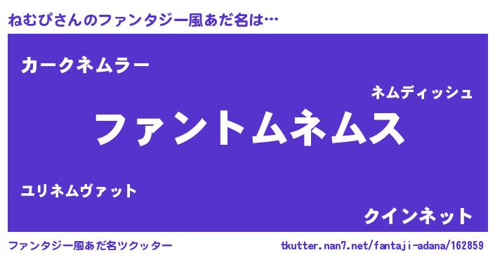 | ヒーロー風カッコイイあだ名 | 『魔戒騎士ネム』『友情の使者ねむぴ』 |