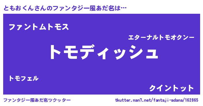 | 男性向けラノベタイトル風あだ名 | 『ともおくんに滅ぼされるだけの簡単なお仕事です』 |