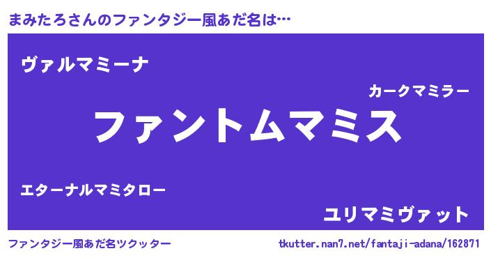 | ヒーロー風カッコイイあだ名 | 『幻影騎士マミ』『仮面マミダー』 |