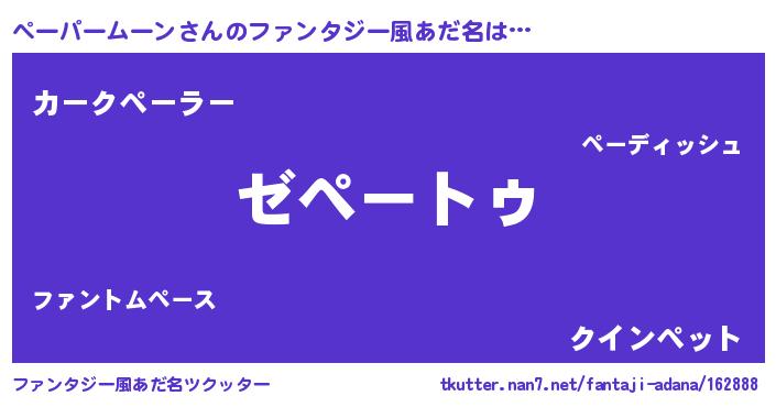| ヘコむあだ名 | 『ペーパームーン(小並感)』『ペー太郎』 |