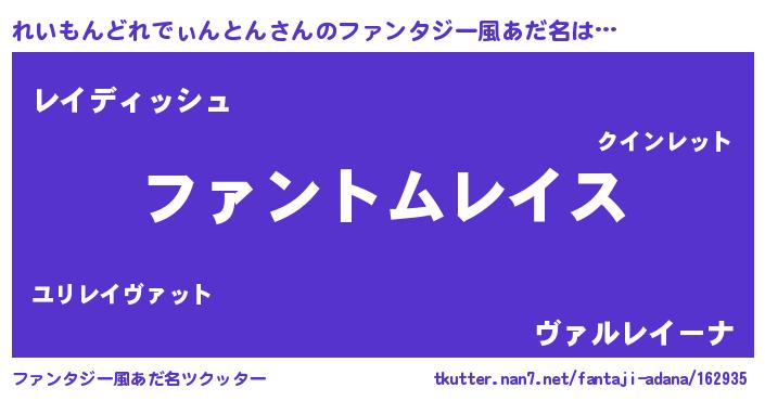 | ヒーロー風カッコイイあだ名 | 『幻影騎士レイ』『仮面レイダー』 |