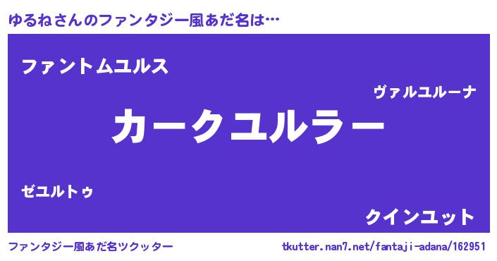 | ヒーロー風カッコイイあだ名 | 『魔戒騎士ユル』『天空の使者ゆるね』 |