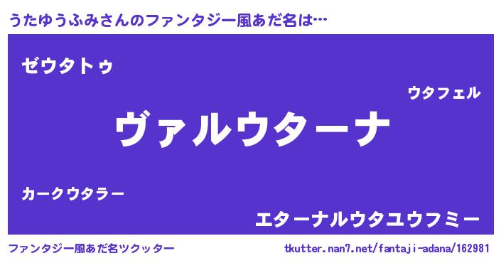 | 意味不明あだ名 | 『住所不定無職うたゆうふみ(47歳)』 |